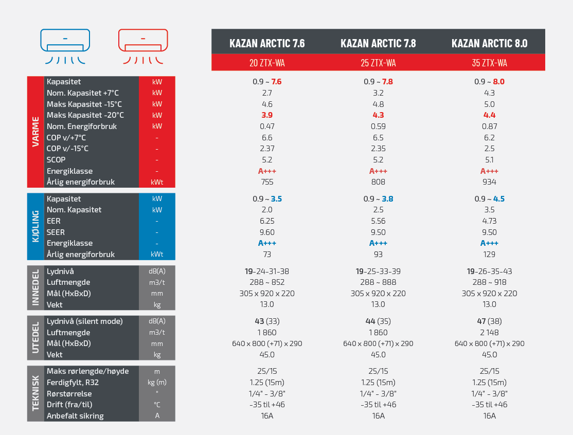 – DC Twin Rotary kompressor med det mer miljøvennlige R32 kjølemiddelet